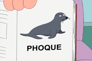 Hey, here, I'll help you remember. What's this? A lazy phoque. Good. Dumb phoque. Good. Sick phoque. Good. Sick, twisted phoque. Good. Cluster phoque.