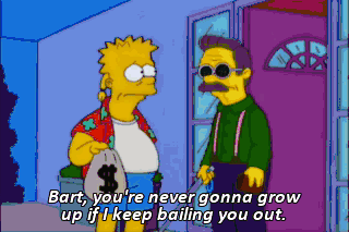 Bart, you're never gonna grow up if I keep bailing you out. Then, please, help me help myself. Oh, all right. But only because you haven't outed Rod and Todd. Hey, y'all ready to party?