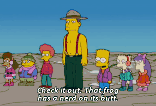 Check it out. That frog has a nerd on its butt. (ALL LAUGHING) Bart, you are the meanest, nastiest little boy that ever lived.