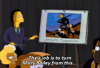 Their job is to turn Mary Bailey from this... into this. Ah, visual aids help so much. Thank you.