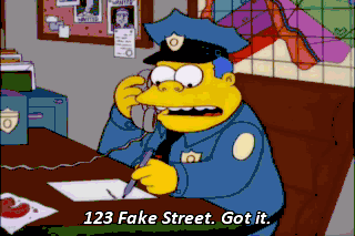 123 Fake Street. Got it. Come on! Come on, boy. Oh, please give it back! You want people food? I can get you people food.