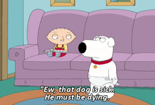 "Ew, that dog is sick. He must be dying. "I hope he doesn't leak on our carpet.