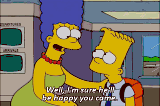 Well, I'm sure he'll be happy you came. MAN: (OVER INTERCOM) Now departing, No-Frills Airlines Flight 89. (PEOPLE SCREAMING) Milhouse, Bart's here. What up, B?
