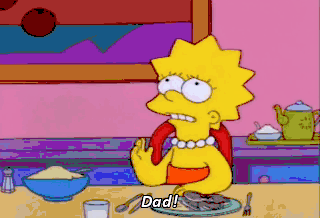 Dad! Those all come from the same animal! Oh, yeah, right, Lisa. A wonderful, magical animal. I think Lisa's right, Dad. Eating meat is ba-a-a-ad. Hey, that's my chop!