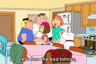 Let's lose the bad tidings, clean up this mess, and find that holiday cheer. - All right. - Why not? We're out of paper towels. No paper towels? Hey, I was gonna pick at that.