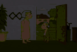 And then Bart opened the door, and Principal Skinner and Mrs. Krabappel were kissing! And swearing! Father! Uncle Apu! A teacher was in the closet with the principal.