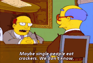 Maybe single people eat crackers. We don't know. Frankly, we don't want to know. It's a market we can do without. So that's it after 20 years-- so long, good luck? I don't recall saying "good luck."