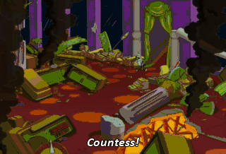 Countess! Countess! Bender! I fell through the deck! Are you hurt, my sweet? No. Luckily, a family broke my fall. just hang on. I'll take care of that fire.