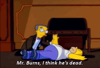 Mr. Burns, I think he's dead. Oh, dear. Send a ham to his widow. Mmm. Ham. No, wait. He's alive. Oh, good. Cancel the ham.
