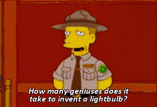 How many geniuses does it take to invent a lightbulb? just one: Thomas Edison. That's very good. And that's true too. It's funny and true.