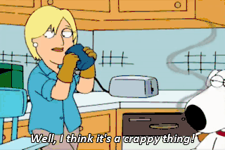 Well, I think it's a crappy thing! In fact, this is my last cigarette, ever. You make me sick, letting yourselves be bought off with a few lousy perks. Oh, I beg to differ.