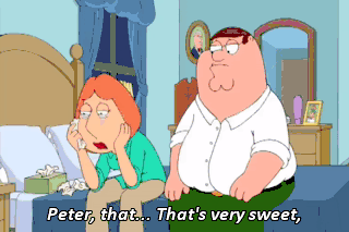 Peter, that... That's very sweet, but how am I supposed to live in this town if I'm a social pariah? What's that? Is that them little fish that eat cows? Just... Just leave me alone, please. (SIGHS)