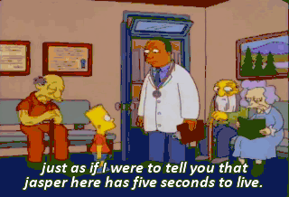 just as if I were to tell you that jasper here has five seconds to live. What'd he say? He said I'm next. Am I going crazy? I'm seeing Krusty everywhere.
