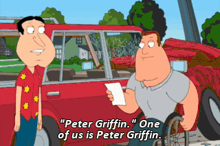"Peter Griffin." One of us is Peter Griffin.
