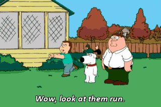 Wow, look at them run. Wait a second, Brian. That gives me an idea. The Drunken Clam? W-Why couldn't we go someplace fancy like The Olive Garden? Oh, The breadsticks.