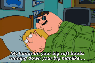 My hands on your big soft boobs running down your big manlike.... Holy crap, it's Chris.