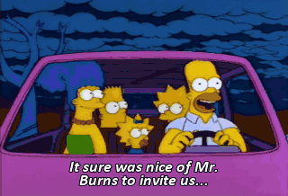 It sure was nice of Mr. Burns to invite us... for a midnight dinner at his country house in... Pennsylvania.