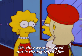 Uh, they were all wiped out in the big trophy fire. Ah! I see the trophies are still out for cleaning, eh, Lisa?
