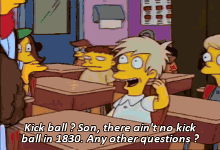 Kick ball ? Son, there ain't no kick ball in 1830. Any other questions ? Shoot, it's awfully quiet on the plains here. Well, how about this ? Everybody, I wanna see two eyes...