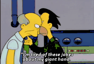 "I'm tired of these jokes about my giant hand. The first such incident occurred in 1956 when"-- Hi, Homer. Mindy! Uh--