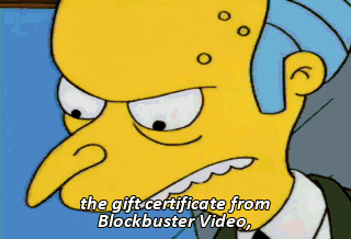 the gift certificate from Blockbuster Video, the freedom to do whatever you want. I'll miss you, Son. I'm sorry, Dad. You're fired! What? Fire me? That does it. You can never be my son. A little to the left.