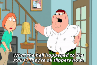 What the hell happened to the stairs? They're all slippery now!