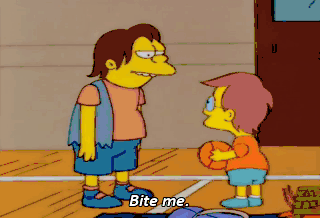 Bite me. Cram it. You're dead. Get bent, ma'am. Why do you have to be such a pain all the time?