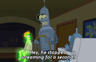 Hey, he stopped screaming for a second! Bend some other stuff! (LAUGHING) (SCREAMS) Bend! Bend! He loves bending, just like me. Aw! I'm gonna call him Ben after the first half of me, Bender.