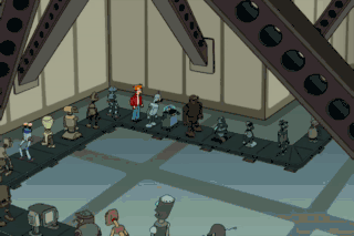 I don't belong here, Bender. This is an asylum for insane robots. Well, you meet half the qualifications. Oh, good! A physical!