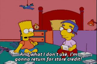 And what I don't use, I'm gonna return for store credit!