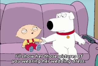 I'll show her those pictures of you wearing her wedding dress. You said there was no film in that camera!