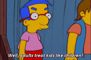 Well, adults treat kids like children! Kids treat adults like cash machines! Adults! Kids! Adults! Kids! Adults! Kids!