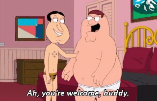 Ah, you're welcome, buddy. Hey, Quagmire, why is the red light blinking on your computer? What are we watching? Glee?