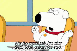 It's the worst job I've ever had. Well, except for one. Uh, Excuse me. Would you like to taste my smoked-meat log? Here you go. Enjoy your food. Enjoy your studio apartment.