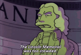 The Lincoln Memorial was too crowded. Sorry, sir. It's just-- No one ever comes to see me. I don't blame them. I never did anything important-- just the Declaration of Independence,