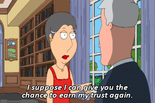 I suppose I can give you the chance to earn my trust again. That sounds like a lot of work. Go to hell! Carter, what are we here for? What are we here for?