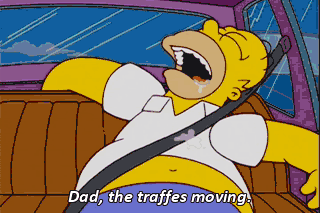 Dad, the traffes moving. Huh? Whoo-hoo! Pedal to the metal!