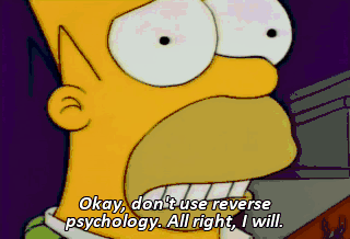 Okay, don't use reverse psychology. All right, I will.