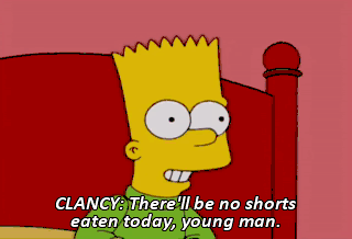 CLANCY: There'll be no shorts eaten today, young man. Bart Simpson, this is a restraining order.