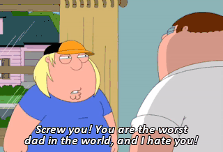 Screw you! You are the worst dad in the world, and I hate you! Well... Well, I hate you, too!
