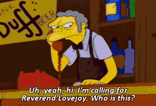 Uh, yeah, hi. I'm calling for Reverend Lovejoy. Who is this? Oh, well, this is, um, the, uh-- the Listen Lady. Yeah, well, listen, lady. I got so many problems,