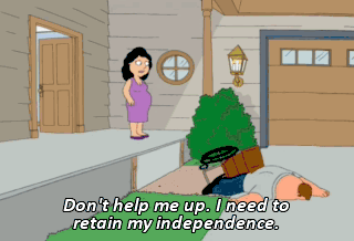 Don't help me up. I need to retain my independence. - You need anything from the market? - PowerBar!