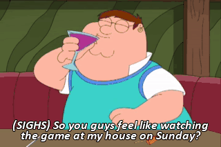 (SIGHS) So you guys feel like watching the game at my house on Sunday? Yeah, that sounds good. Yeah, that'd be good. PETER: Hey, Quagmire. Quagmire. - Yeah? - I'll be there.