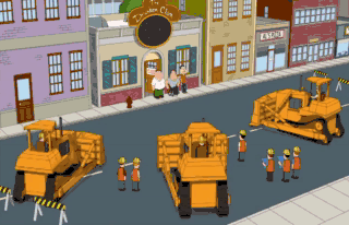 Hold it, hold it! What's going on? We're here to demolish this building by order of the bank.
