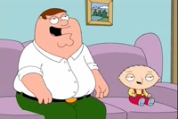 Hey, drippy. You're back. What's for dinner? Peter, when I said bond with Stewie, this is not what I had in mind. I am furious with you! You can't talk to him like that. (GRUNTING) Take that!