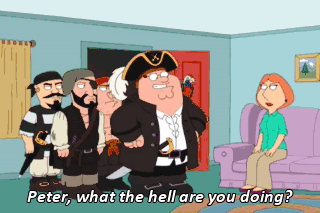 Peter, what the hell are you doing? That's Long John Peter to you, porthole. (ALL LAUGHING) Fetch me five tankards of ale and a leg of mutton for me maties!