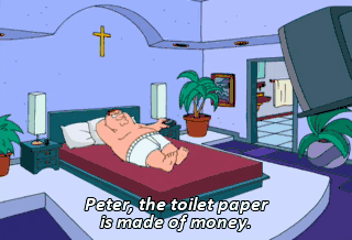 Peter, the toilet paper is made of money. Yeah, and look at this. They even got some of that high-class British porn.