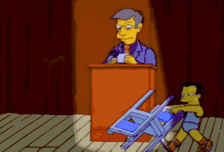 Make sure you return those chairs to the cafeteria. I'm not kidding. Ah... finished, with 15 seconds to spare. Ah! D'oh! D'oh! D'oh! D'oh! What's the matter, buddy? The moron next door closed early.