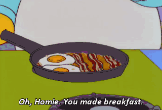 Oh, Homie. You made breakfast. Nothin's too good for my one and only. Eat! Eat! You're nothing but skin and bones. Ah-choo!