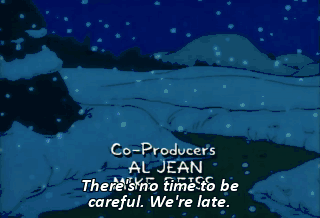 There's no time to be careful. We're late.